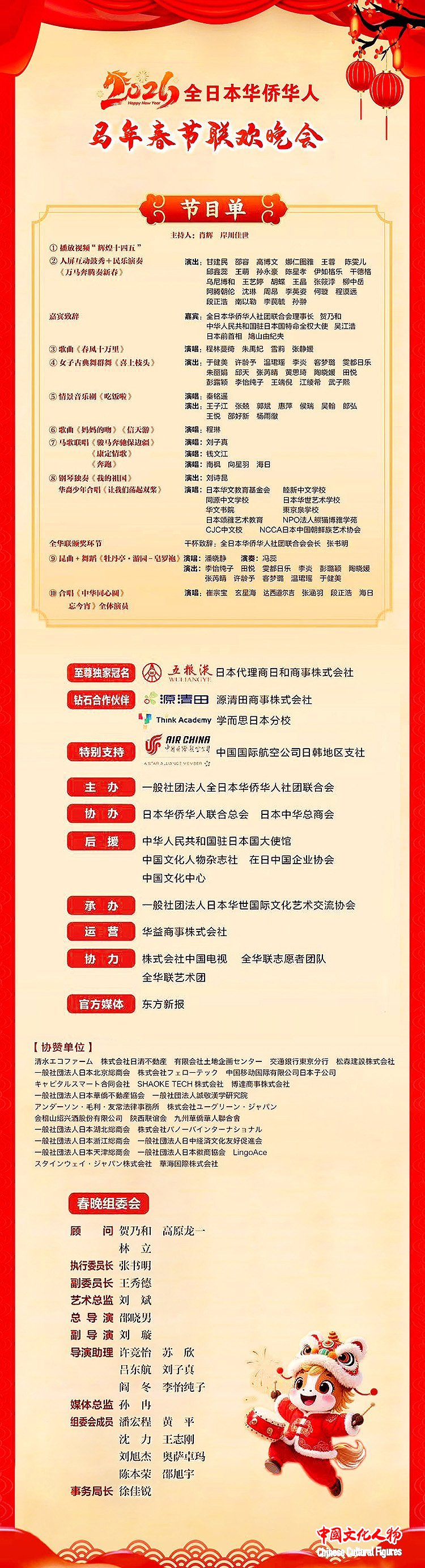 “2026全日本华侨华人马年春节联欢晚会”节目单