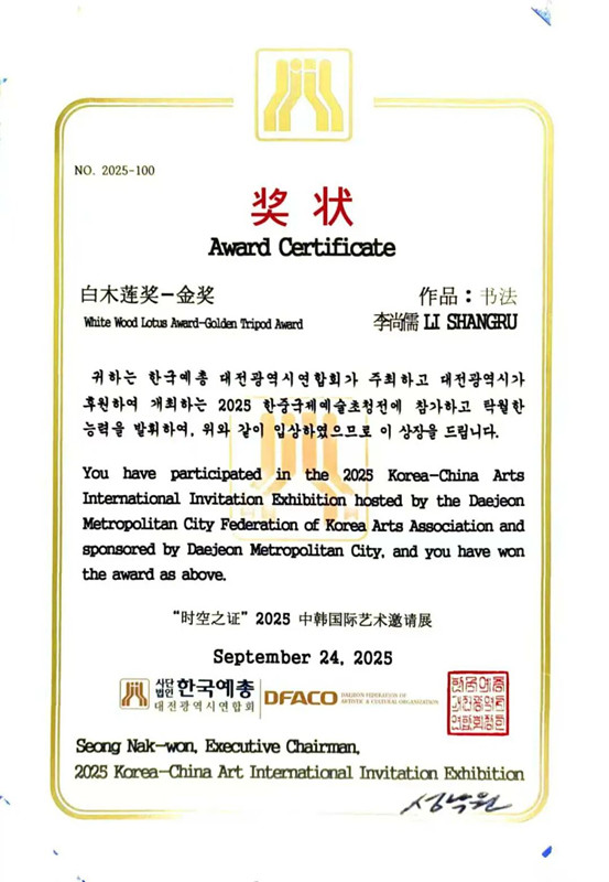 从齐鲁大地到韩国大田,李尚儒的每一步都带着对传统文化的敬畏与热爱。此次载誉,并非终点,而是他作为文化使者的新起点——未来,这份浸润着东方智慧的温润力量,必将继续跨越山海,让更多人读懂中华传统文化的深厚与美好,让中韩文化交流的画卷,晕染出更动人的色彩。