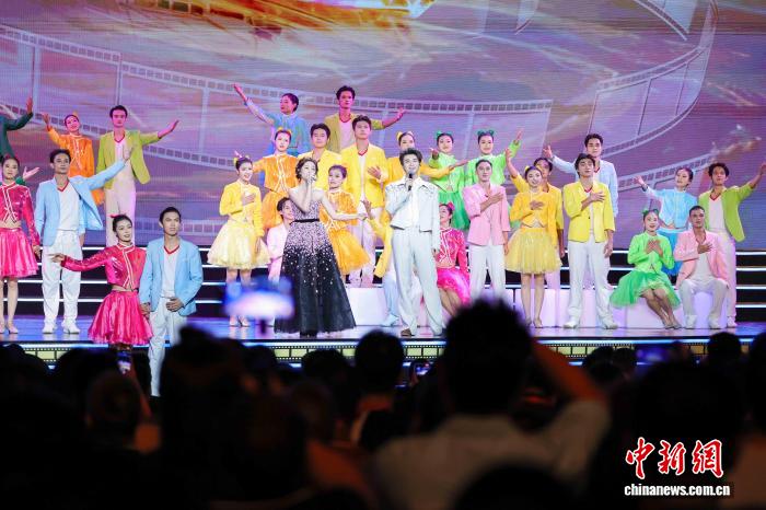 图为吴宣仪、蔡程昱表演《我们的光影 我们的歌》。中新社记者 骆云飞 摄