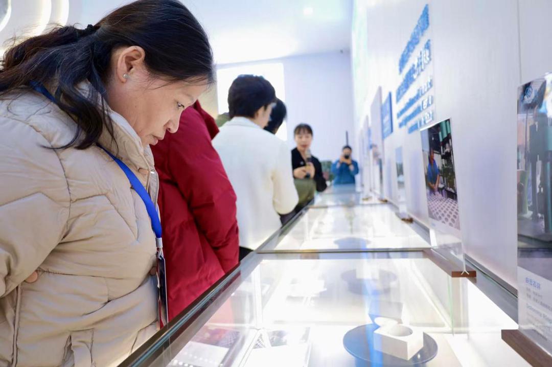 活动现场,培育钻石展台是核心参访区域。展台内,“HUAJEW华晶”品牌的培育钻石饰品整齐陈列,灯光下,钻戒、吊坠等成品折射出璀璨光泽,引得女性媒体代表纷纷驻足。有人凑近展台细察钻石的切工与光泽,有人拿起展台上的图文资料翻阅,更多人围在工作人员身旁提问。“我们拥有多项自主知识产权,工业金刚石和培育钻石产能均位居行业第一梯队,从毛坯生产到成品切磨,裸石培育到个性定制,再到后期品牌打造,全流程实现自主把控,产品质量有坚实保障。”工作人员耐心回应着媒体代表的疑问。