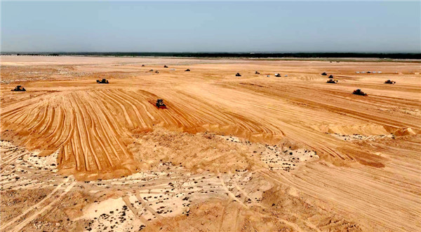 “这里曾是风沙入侵的通道,也是我们生态治理必须攻克的‘堡垒’。”察尔齐镇片区负责人林茂青介绍,项目于6月启动土地平整,已接近尾声,正全力为后续的大规模种植做好准备。