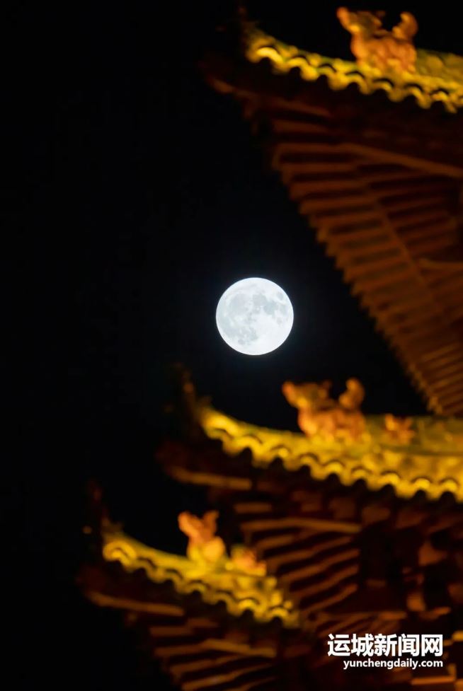 运城鼓楼邂逅超级月亮 演绎绝美中式浪漫