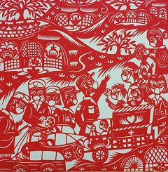 2020年春节,我国爆发新型冠状病毒肺炎疫情,以习近平同志为核心的党中央发出号召,全国人民万众一心,抗击疫情。医疗战线紧急驰援疫情重灾区,其他行业如何动作呢?南京大学文化与自然遗产研究所做出了示范,他们在做好自身防护的同时,发动全国民间剪纸非遗传承人拿起手中的剪刀献大爱,以剪驰援,以传统的民族民间文化为武器,运用中国非遗剪纸的语言、符号、寓意等元素创作出一批精品力作,向奋战在疫情一线的勇士们表达问候,给疫情严重的地区加油鼓劲。