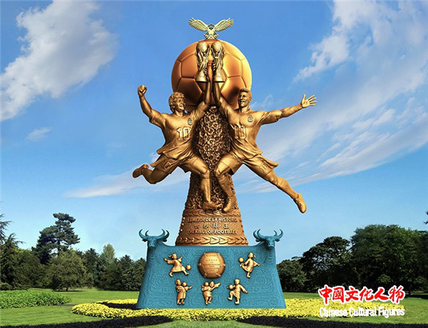 不确定的世界更需要体育与艺术,黄剑雕塑《世界球王》亮相博鳌论坛